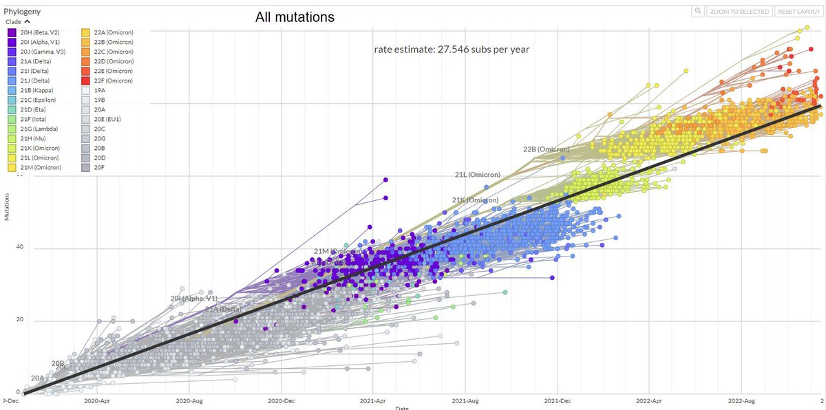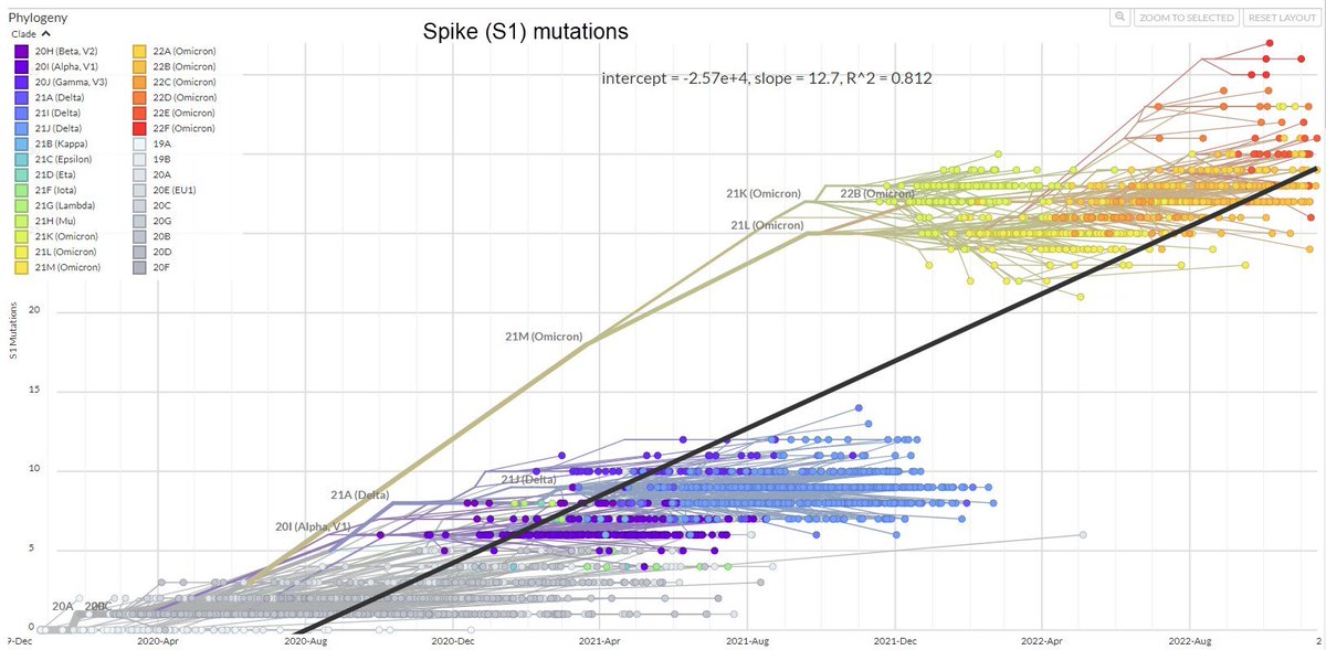 The evolutionary pace of SARS-CoV-2 is accelerating. Genetic diversity is a strength, not a weakness, because out of diversity will emerge the winning mutation that will be the hit which gives rise to the true successor of Omicron BA.1. From @TRyanGregory