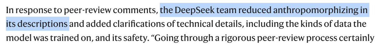 Yes, I peer reviewed DeepSeek-R1 paper for @nature and hope to see more frontier model developers follow their lead of sharing peer-reviewed technical details of their work, and go beyond buzzy blogs and patronizing "yeah, we have done it this way too" post facto claims..🤞