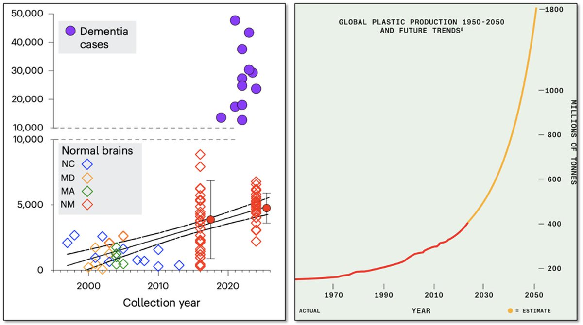 1/5) Microplastics are accumulating in the human brain at an alarming rate. Over the past ~8 years, brain microplastics have increased by ~50%.