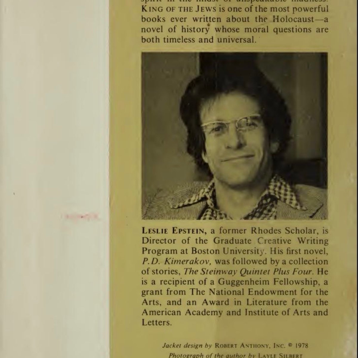 Leslie Donald Epstein was paid a grant by The John Simon Guggenheim Foundation to write this novel.