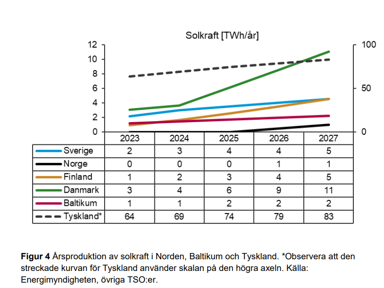Ruotsin kantaverkkoyhtiö SvK arvioi Suomessa 2027 tuotettavan 5 TWh 🌞-sähköä. Se tarkoittaa yli 5 GW:n asennettua tehoa.