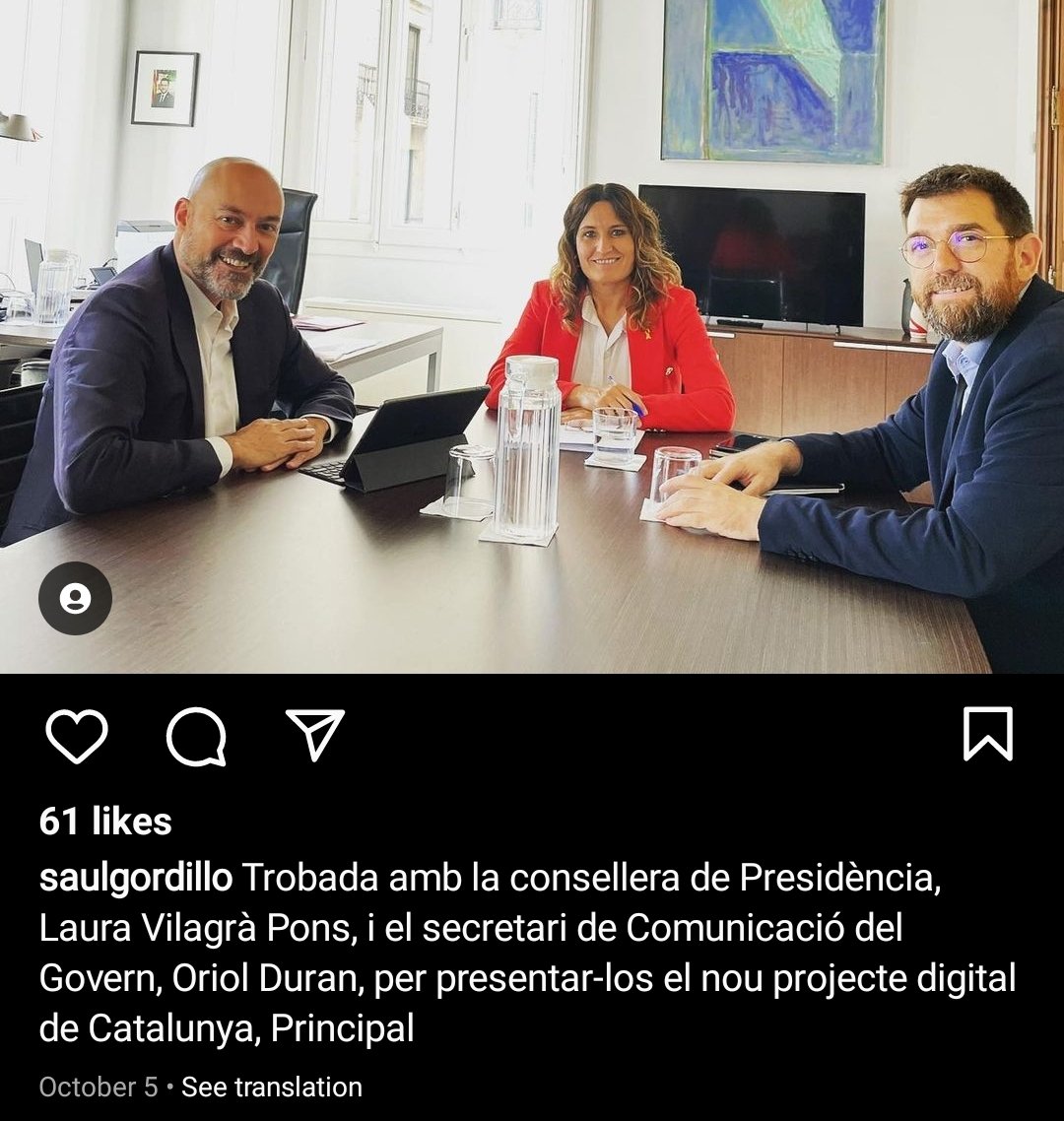 Tras su etapa como director de Catalunya Radio (pública), lo metieron a dirigir un nuevo digital de noticias cortas con chavales/as de aproximadamenrte 19 años en un cuarto de 15 m².