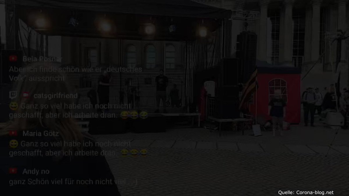 8/20 Von 18 bis 19 Uhr werden Menschen mit Megafonen zum Reichstag gelockt - unter anderem mit dem Gerücht, Donald Trump sei in der Stadt. Währenddessen plaudert der Rechtsradikale Nikolai Nerling auf der Reichsbürger-Bühne von seiner Grill-Freundschaft zu Michael Ballweg. twitter.com/i/web/status/1…