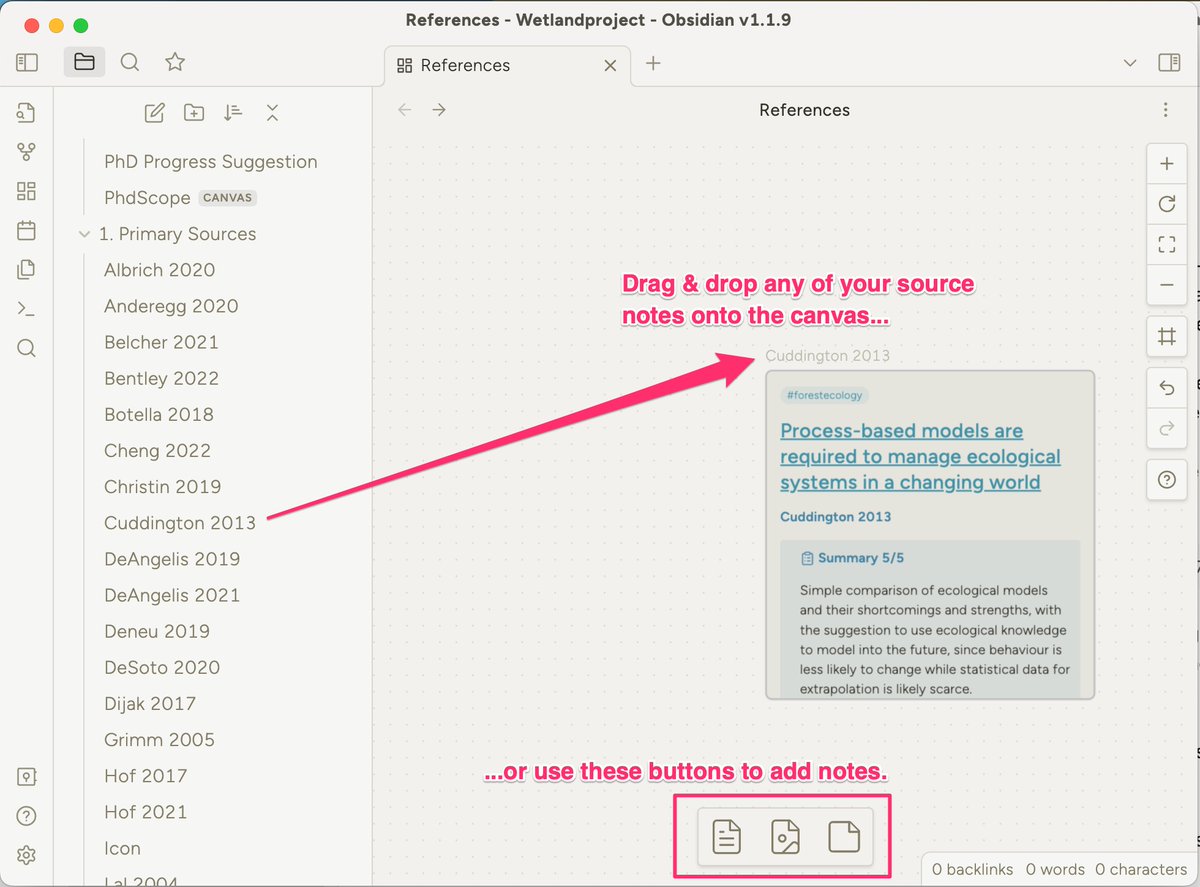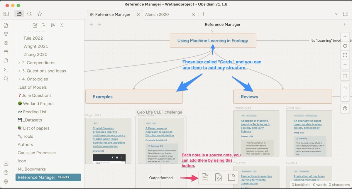 @obsdmd The last step is to start adding "Cards". While Notes live in your vaults, cards live on the canvas. (The canvas is itself just a note in the vault).