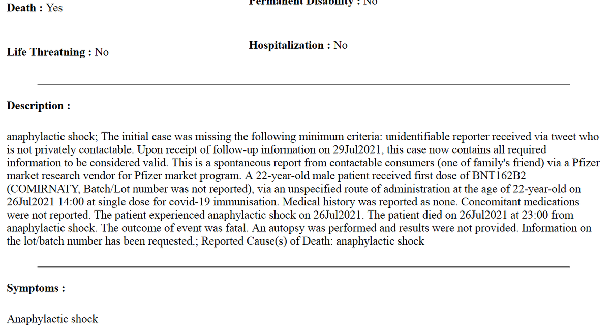 1/ Things you find on GETTR. 👇This is obviously the VAERS entry for Maxime Beltra, a young Frenchman who died 9 hours after receiving his 1st dose of Pfzr-BNT jab in 2021. Beltra took the shot to be able to go on vacation. @tatiann69922625@CaudeHenrion