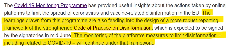 5/ But the monitoring continues under the aegis of the EU's new "strengthened" Code of Practice on Disinformation. 👇