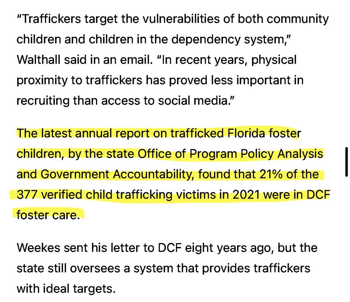 **CORRECTION. 79. That’s approximately how many verified child sex trafficking victims were recruited out of Ron DeSantis’ state-run foster care in 2021.