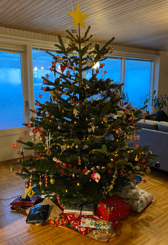 Så blev det igen tur til min hjemmelavede stjerne kom på træet og man skal kæmpe med at underholde børnene inden det går løs.