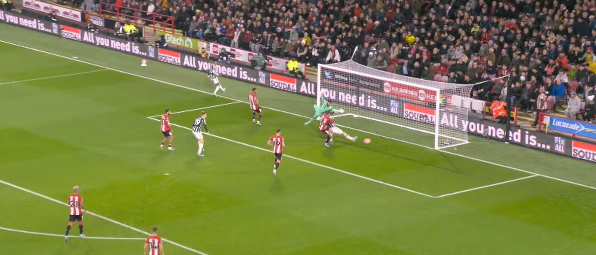 Awoniyi could've done better by following the run of Rashy but instead, he got himself doubling on Bruno which wasn't needed at all. Terrible mistake from their half.