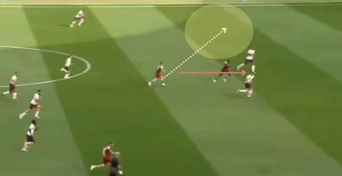 🔸Off ball selfless but valuable runs with the sole aim of dragging opposition out of position to vacate a space which your teammate might exploit arriving late aiding progression accessing the center.