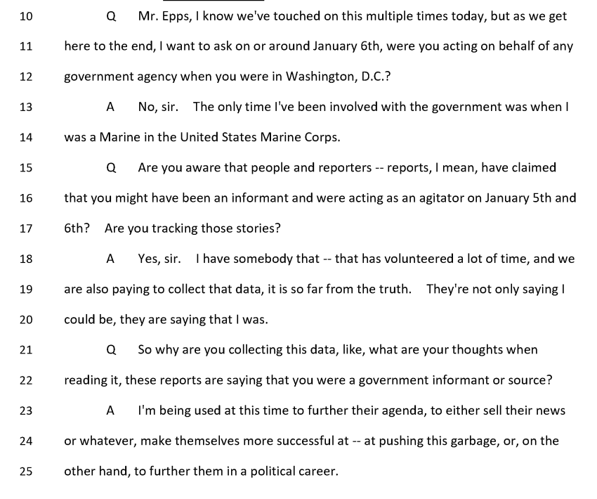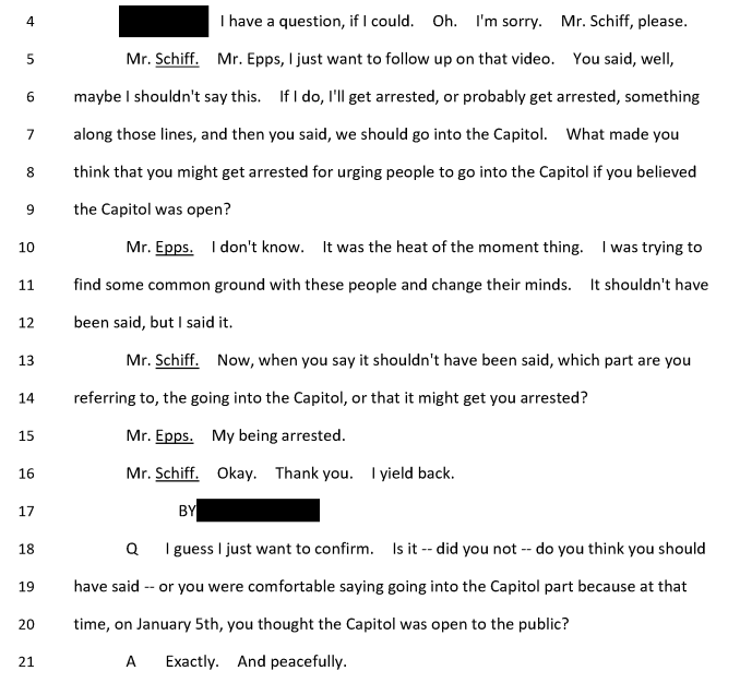 Side note: this is where the Jan. 6 committee's work can be really valuable. DOJ is restricted from sharing the reason for the prosecutorial decision not to charge Ray Epps, but the transcript does it for them. They'd have trouble differentiating Epps from ~5K other trespassers.