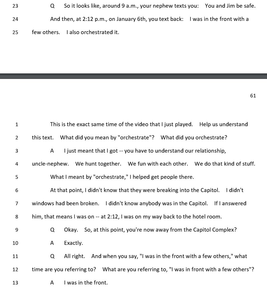 Ray Epps trying to explain his "orchestrated it" text to his nephew.