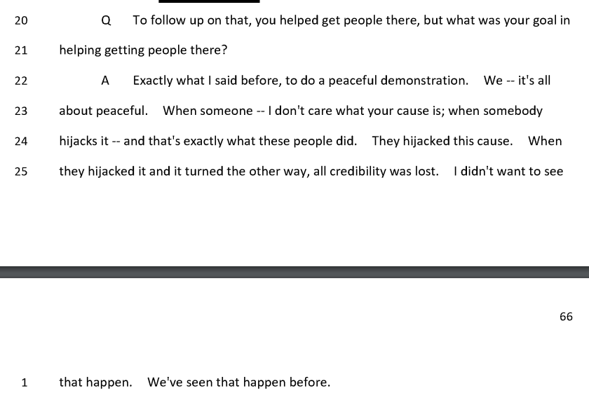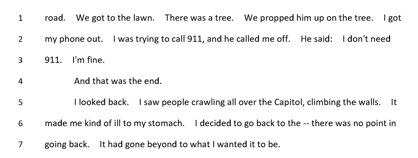 "I saw people crawling all over the Capitol, climbing the walls. It made me kind of ill to my stomach... there was no point in going back. It had gone beyond to what I wanted it to be."