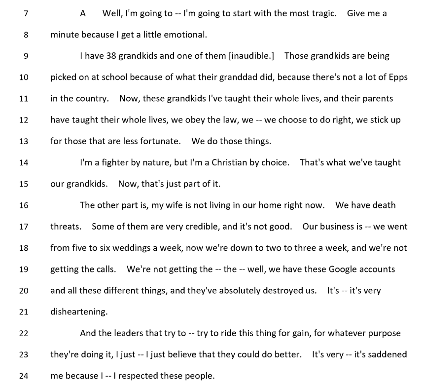 "Those grandkids are being picked on at school because of what their granddad did... the leaders that try to — try to ride this thing for gain, for whatever purpose they're doing it... it's saddened me because I — I respected these people."