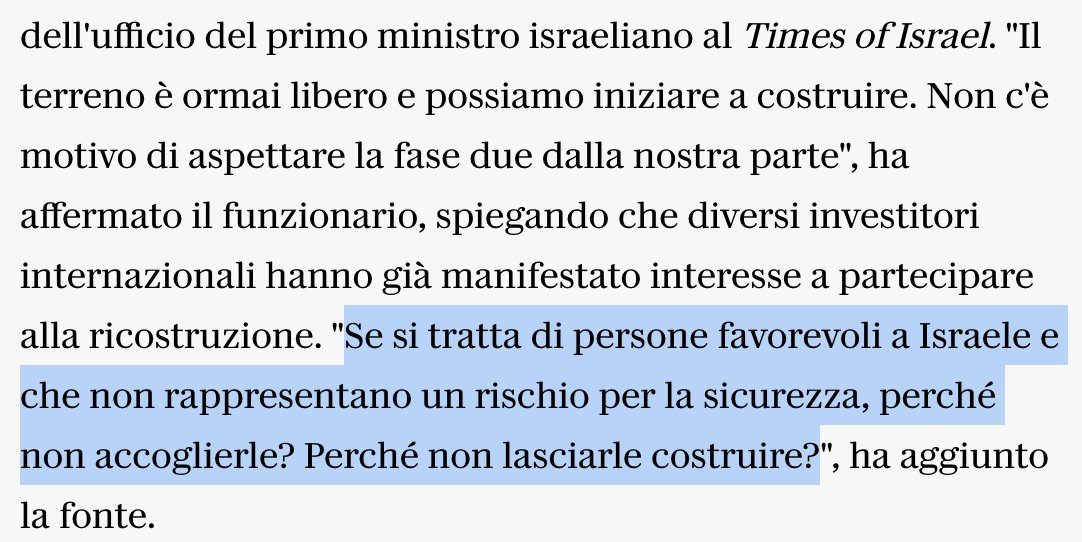 la "spartizione" (furto) della striscia di Gaza (il 53% del totale, la parte fertile)—camuffata da "ricostruzione"—è uno dei più gravi crimini del nostro tempo: nel silenzio generale, con la connivenza di tanti governi europei, sopra le ossa e le macerie di 1 popolo di profughi.