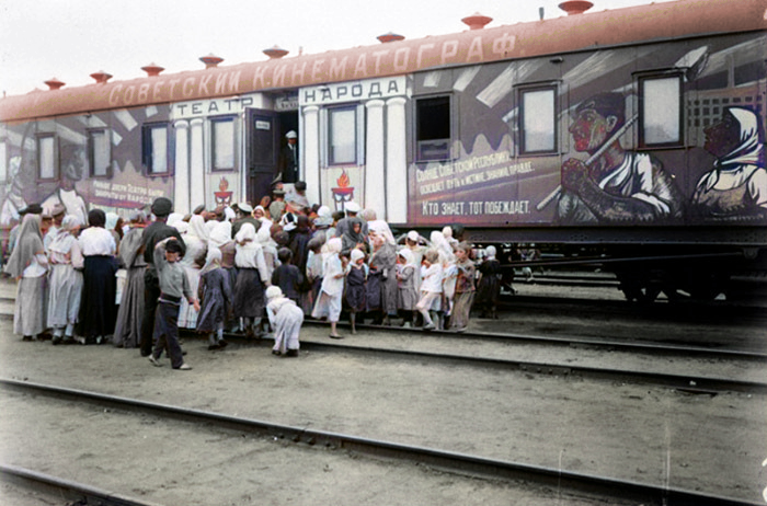El estado soviético creó trenes de agitación cultural para acercar la cultura a las aldeas mas remotas, habia campesinos que por 1ª vez veian el cine.