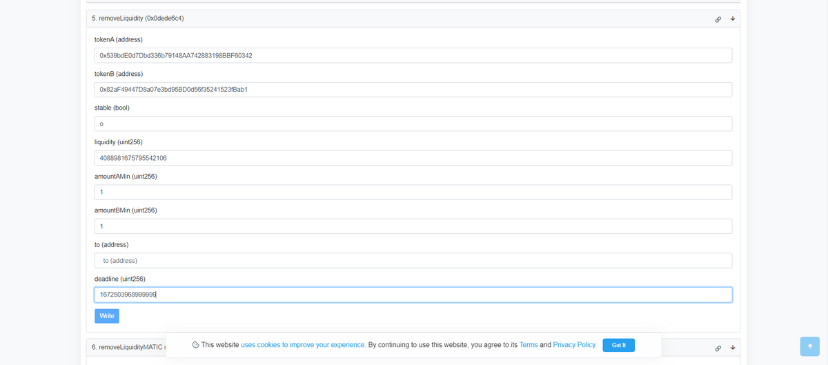 Ahora buscamos la función 5 'removeliquidity'