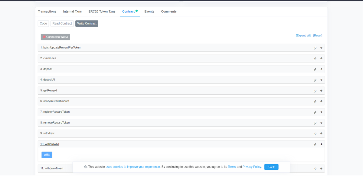 Aquí deberemos ir al contrato, clicar en write as a proxy y conectar nuestra billetera.