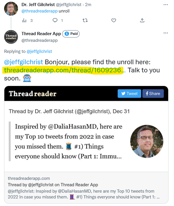 3) The unrolling service will reply to your tweet with a link to the one-page unrolled web version which in this example is 10/: threadreaderapp.com/thread/1609236…