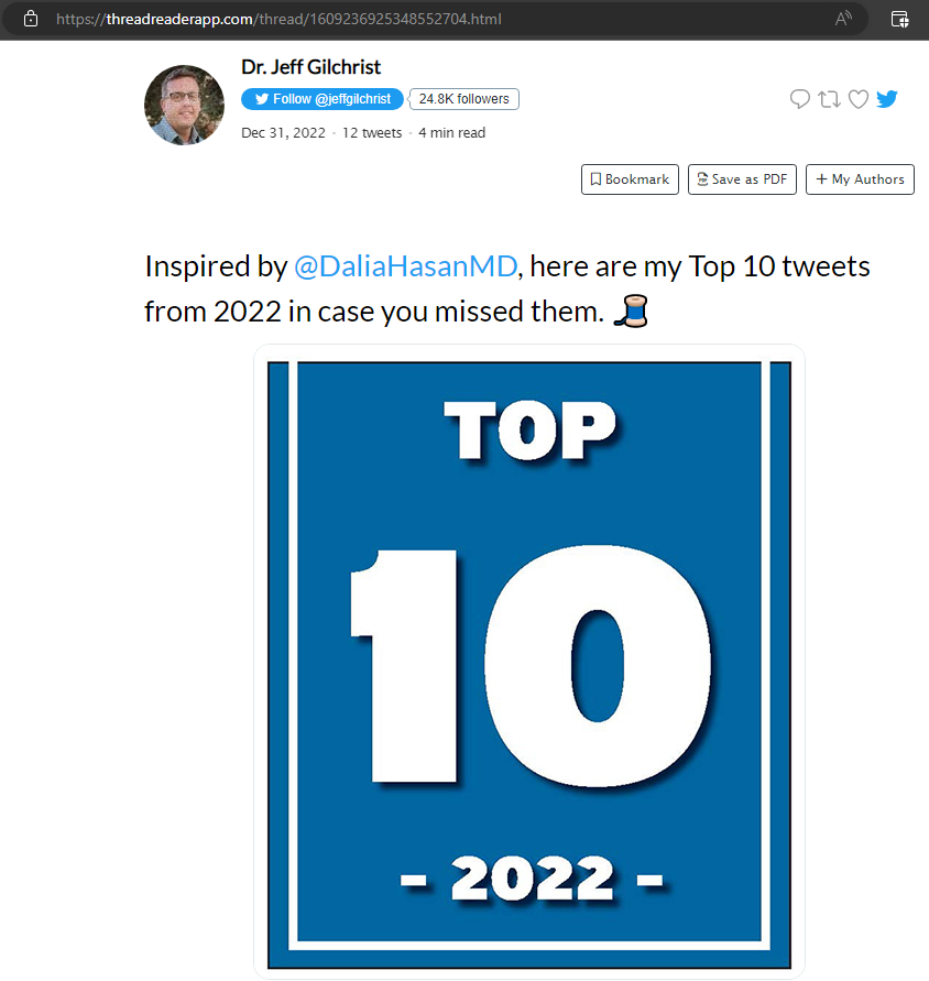 Sometimes other people have already unrolled threads from authors and you can find other interesting tweets by them visiting the author page on these services. 13/