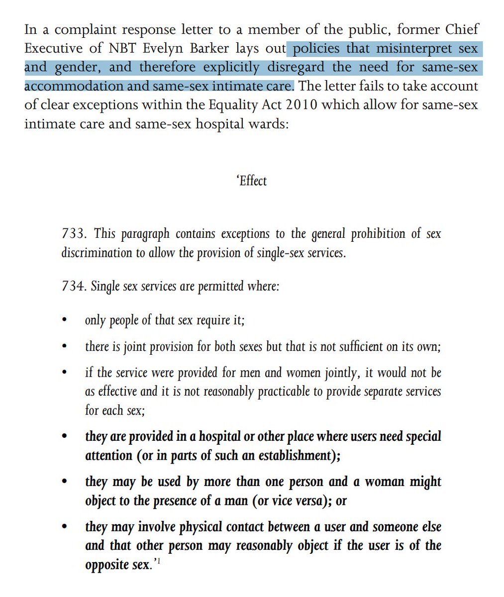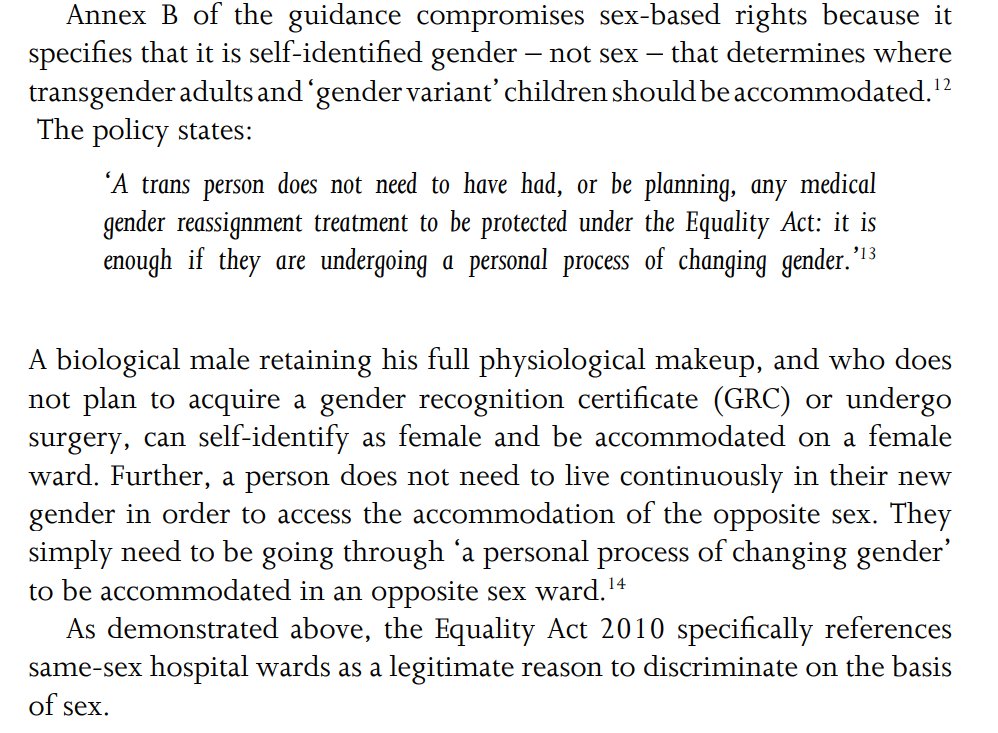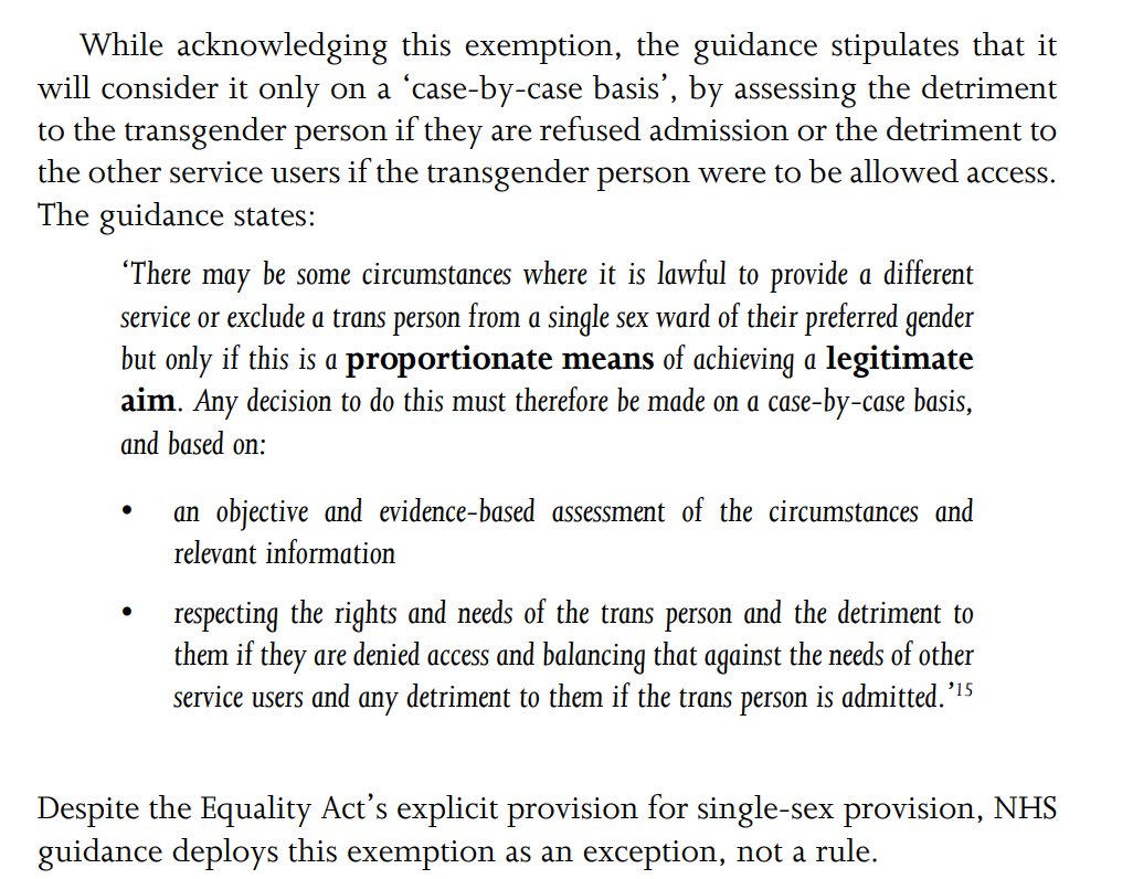 @moira_robin@truesolicitor This section seriously criticises the NHS's guidance regarding the application of EA2010 in relation to gender reassignment. It argues that EA2010's specific exception permitting single-sex wards should be interpreted as a blanket ban on trans people using wards for their gender.