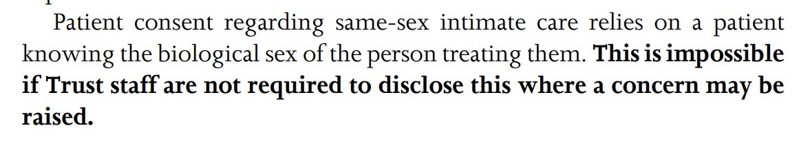 This demand goes FAR wider than the question of accommodation for trans patients or the duties alllocated to trans staff. It amounts to a demand that no male nurse, doctor or other staff should ever enter a ward containing female patients.