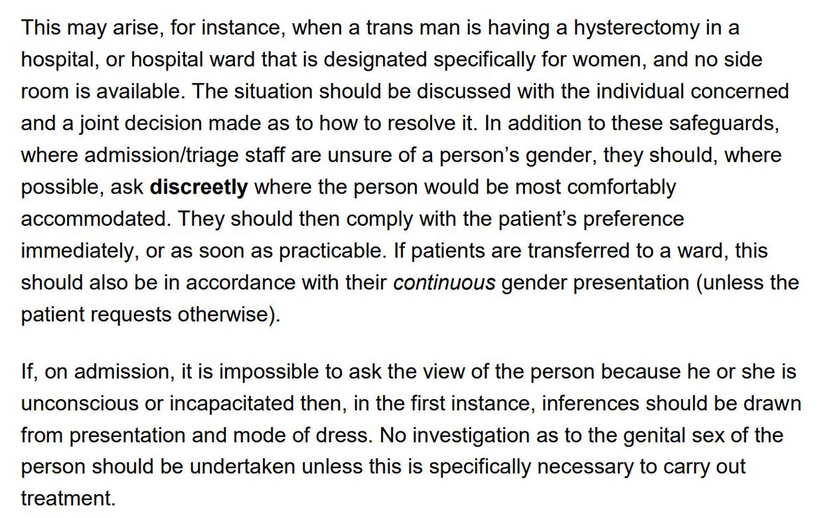 But the NHS's guidance does discuss this, in detail. Annex B includes paragraphs specifically addressing the need of trans men for privacy and safety when receiving healthcare related to their female biology.
