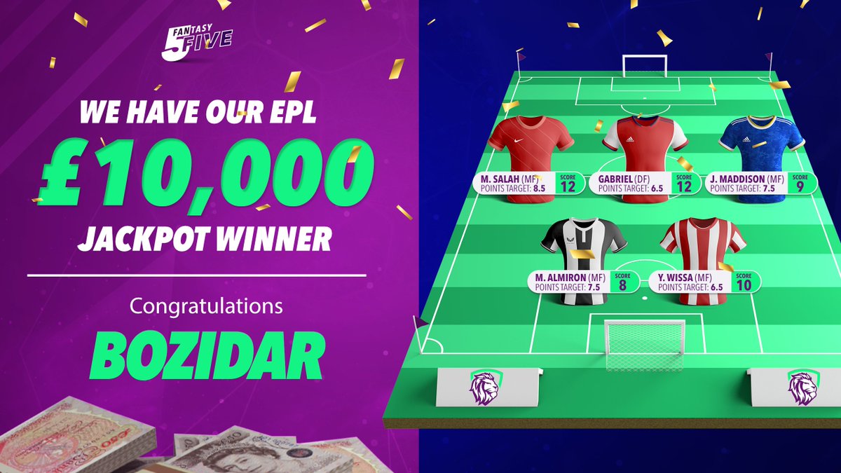 Fantasy5 had a winner last week! It was the SIXTH time that £10,000 was won – make sure you chance your luck for free & give yourself the chance to win easy money from football too! 🔥