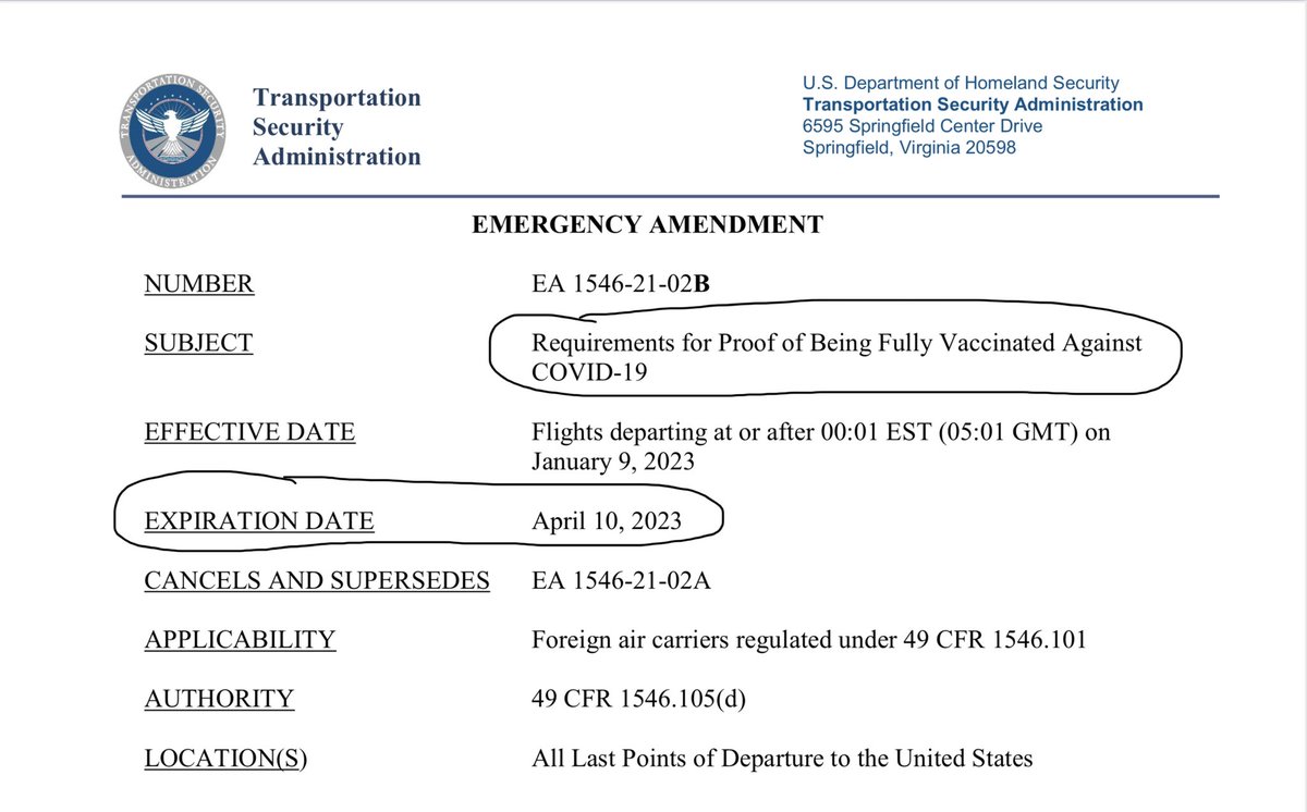 🚨 | Breaking - USA extends entry requirement of proof of vaccination for non-US nationals until April 10 2023