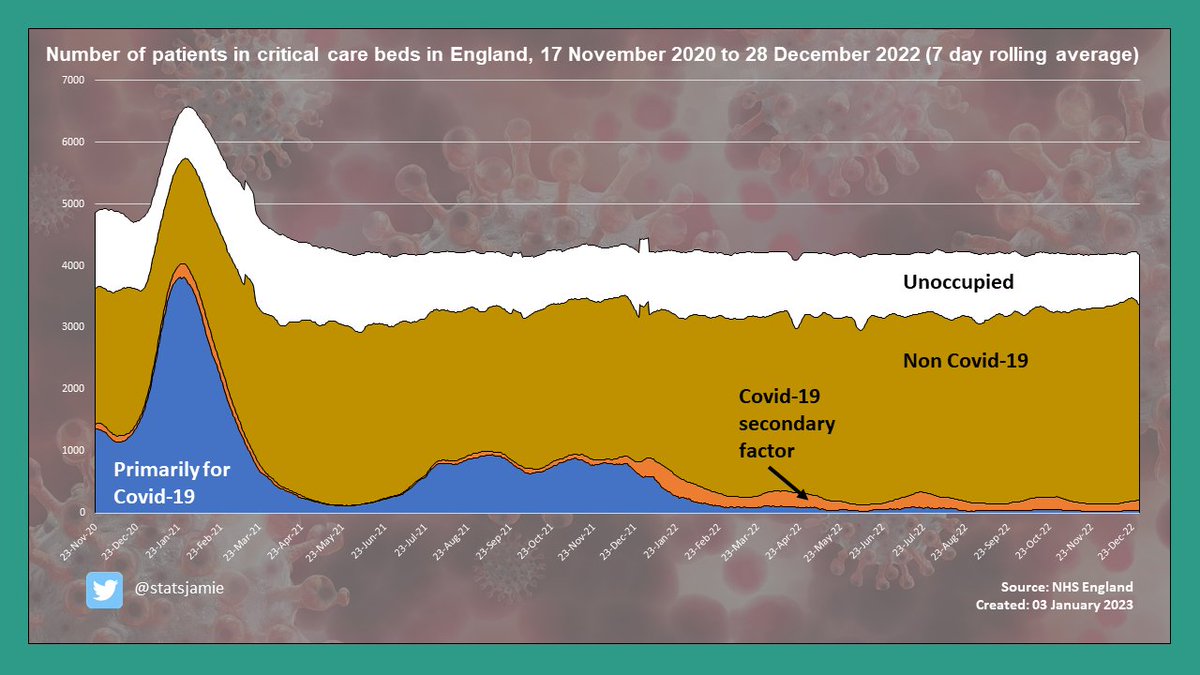 💥 It's not Covid behind this with about 1%, or 41 patients in critical care predominantly due to Covid much lower than the Jan 21 peak of ~ 3,816