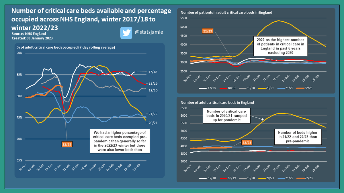 We had a higher percentage of critical care beds occupied pre-pandemic than generally so far this 2022/23 winter but there were also fewer beds then.