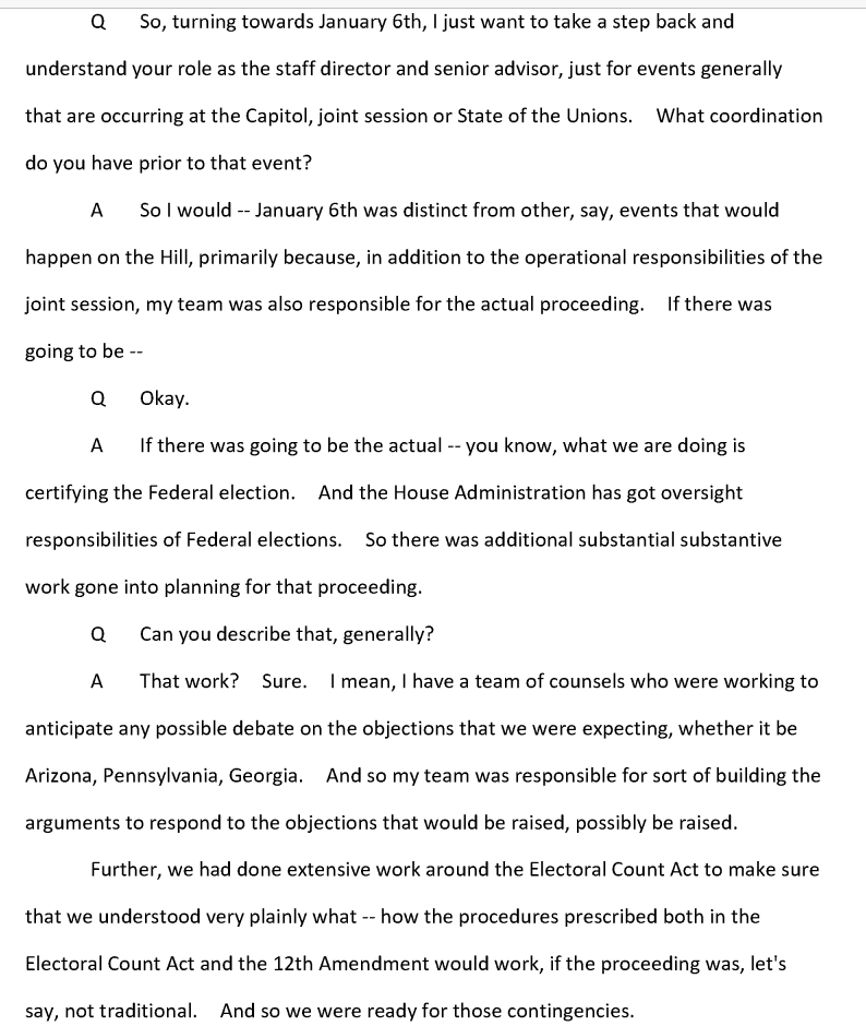 Fleet--who works for Pelosi and Zoe Lofgren (on J6 committee) started preparing IN DETAIL for GOP objections to certification on Jan 6. WTAF: