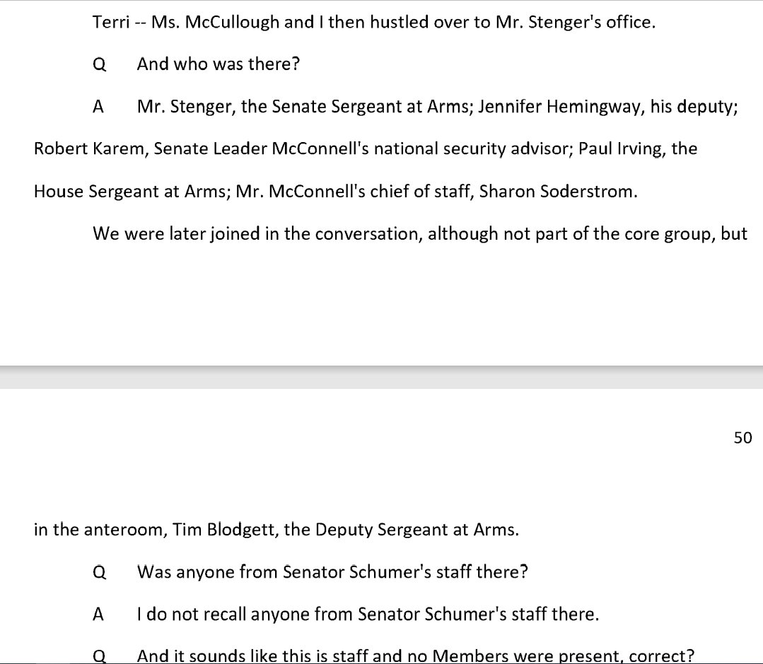 responsible for security---sergeant-at-arms for Pelosi and McConnell--repeatedly refused his requests.