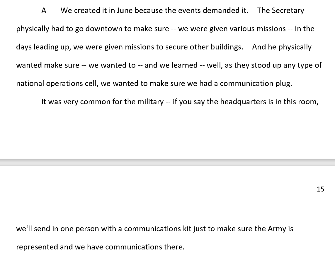 More evidence that advance planning for Jan 6 happened in the summer of 2020. This from Lt. Gen Walter Piatt (director of Army staff) interview: