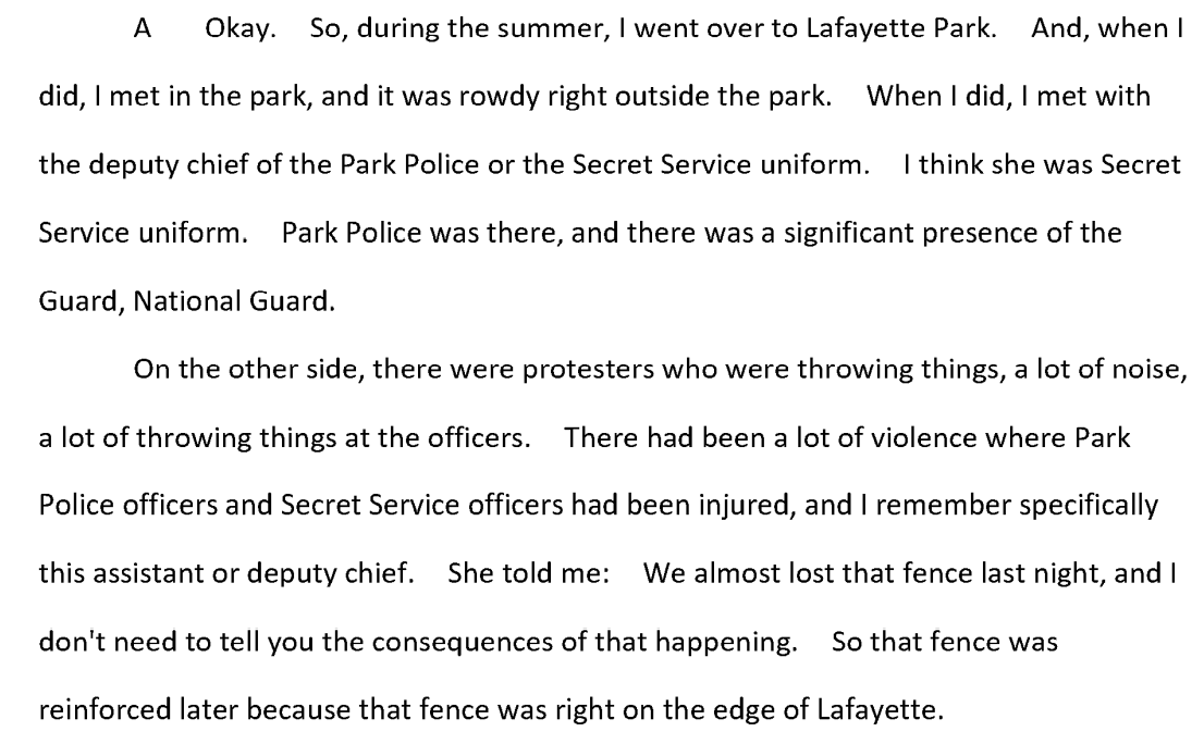 One investigator suggests different "response" to Lafayette Square rioters was bc racism.