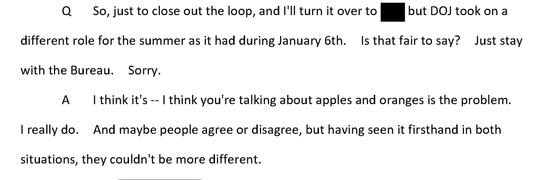 J6 committee, in interview with former FBI DD David Bowdich, attempts to compare rioting, violence of 2020 to Jan 6.