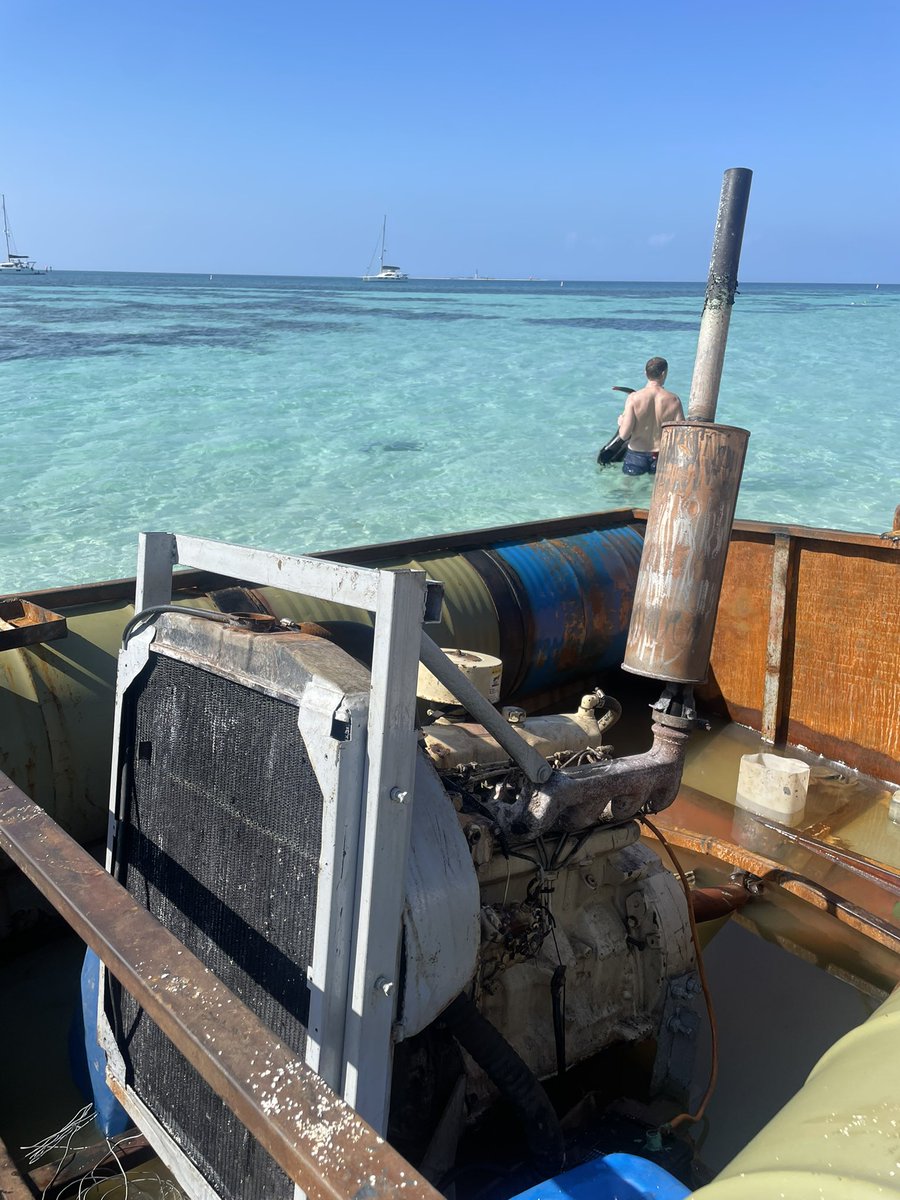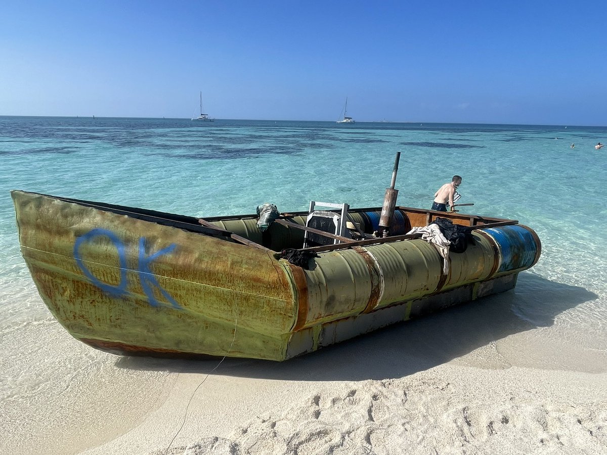 This was a chug that had just landed when we arrived. They are constructed with whatever they have on hand: barrels, sheet metal, and even a diesel engine from a vehicle. You can also see their travel provisions: jacket, life vest, and some bags of crackers.