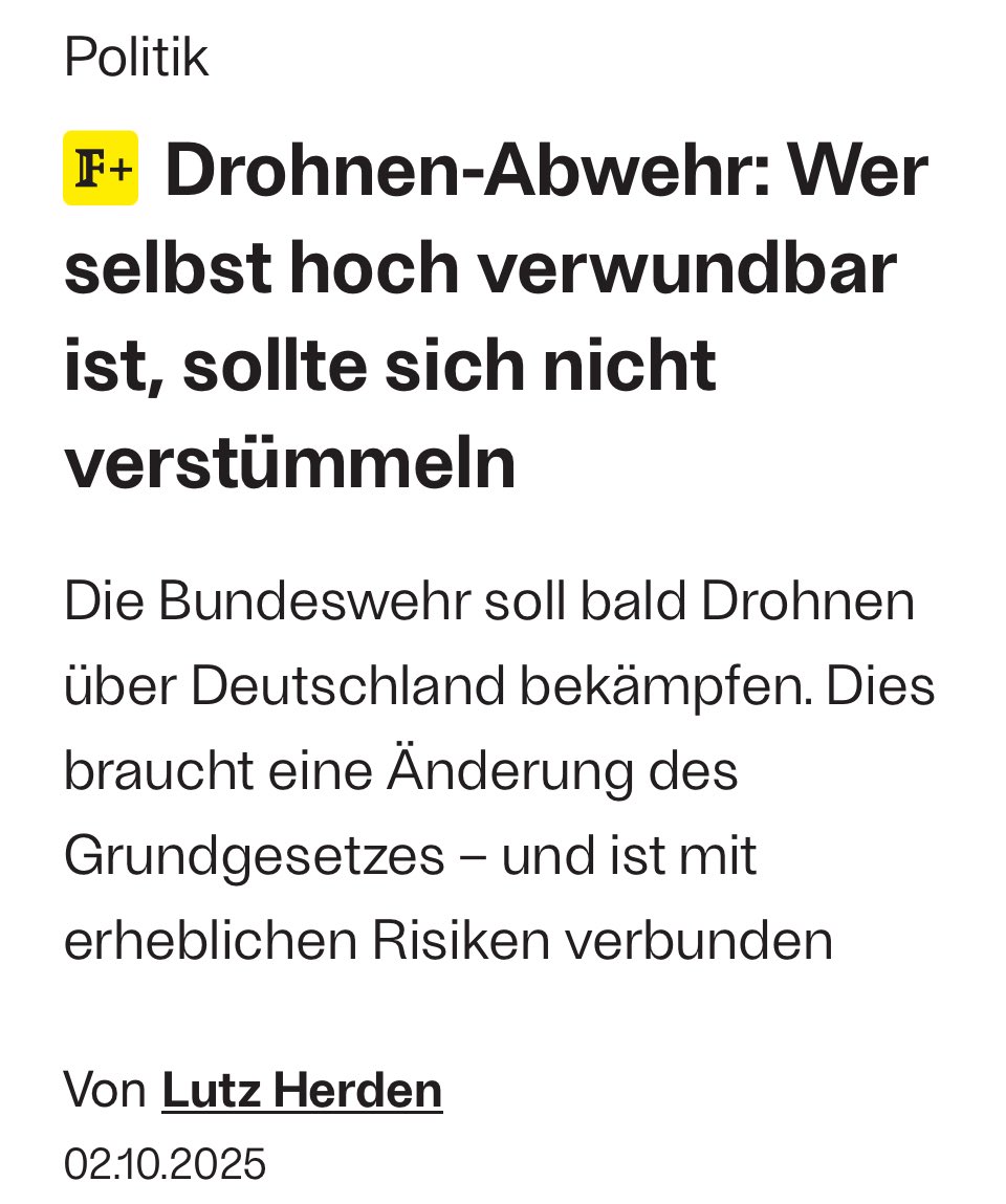 1/ Die Corona-Hardliner der Union fordern wie schon vor fünf Jahren in hektischem und wenig reflektierten Alarmismus sofortige Maßnahmen („Schnellgesetz“) und Gelder zur Drohnenabwehr, ungeachtet der massiven Risiken, die aus einem Abschuss für die Bevölkerung resultieren: