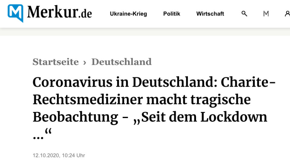 Konkret hatte Tsokos demnach die Beobachtung gemacht, dass Menschen aus Angst und wegen der verbreiteten „Drohszenarien“ nicht mehr ins Krankenhaus gegangen waren, wie auch MERKUR am 12.10.20 berichtete: