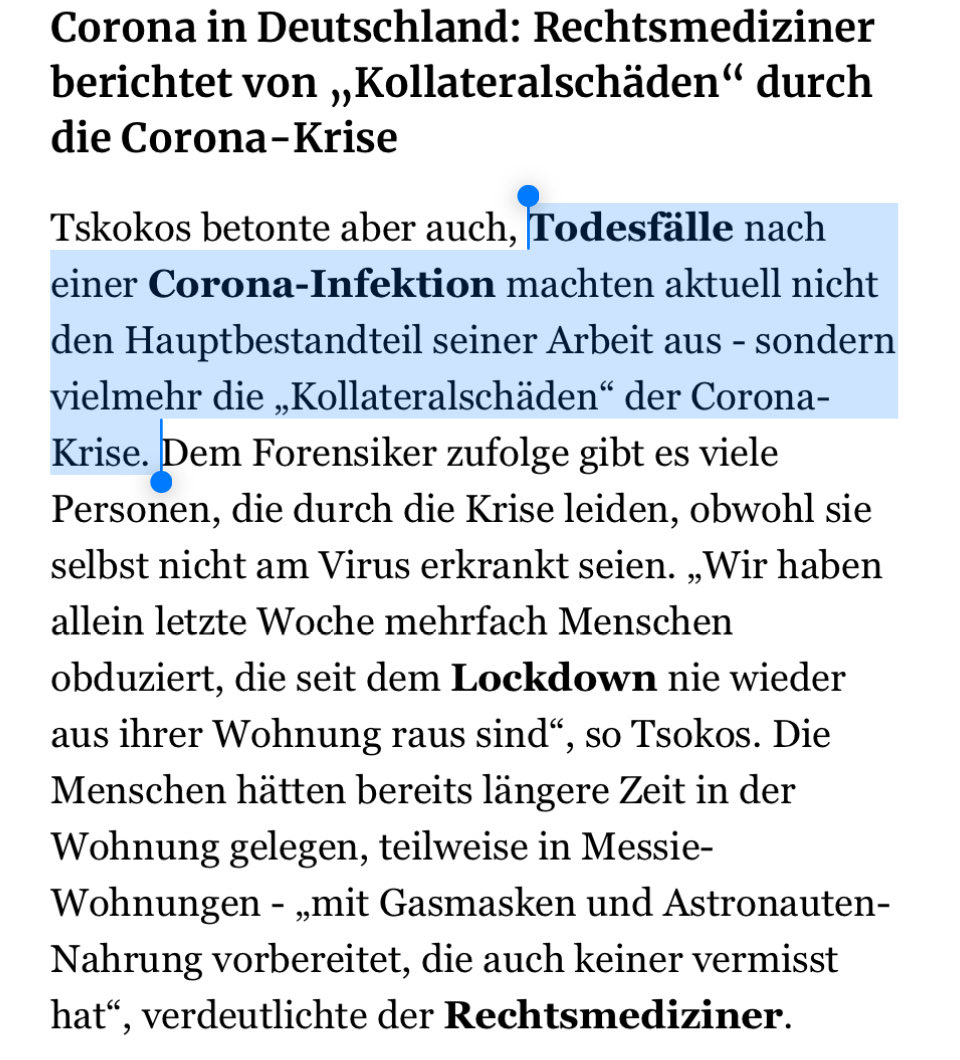 „Wir haben … als Rechtsmediziner viel weniger COVID-19-Tote, sondern vielmehr die Kollateralschäden, die …
