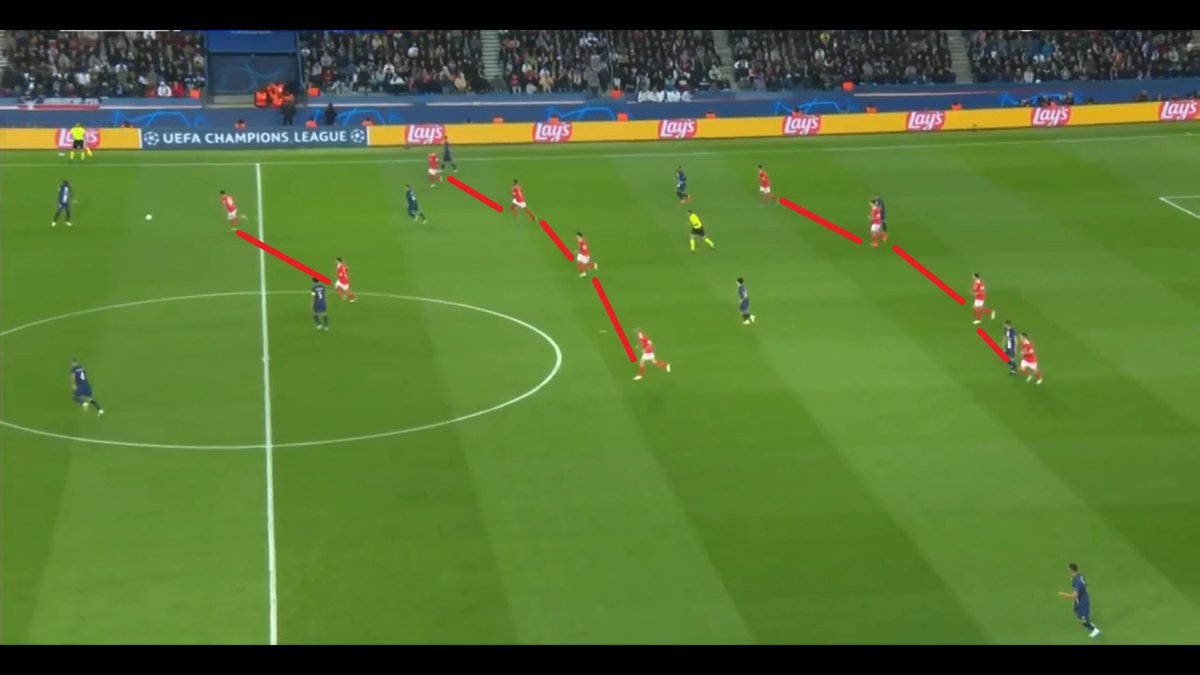him the right angles for his extensive passing range. Benfica also have an aggressive press (7.95 ppda), which suits Enzo's aggressive, high-intensity style, one he became familiar with under Marcelo Gallardo at River. Benfica's 4-2-3-1 becomes a 4-4-2 out of possession.
