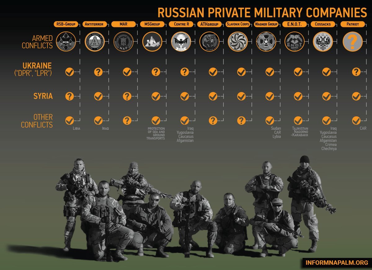 Les sociétés militaires privées (PMC) en Russie se multiplient, il y en a bien plus 👇que la seule Wagner, la plus connue. On en est à une dizaine.