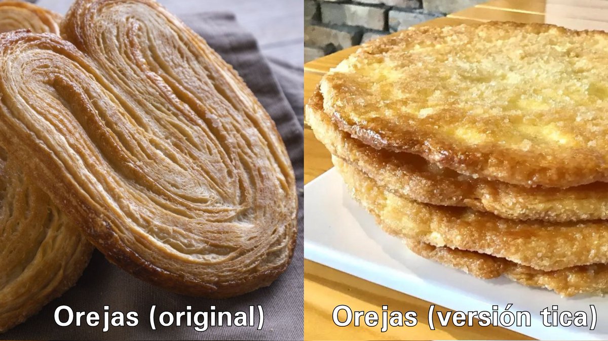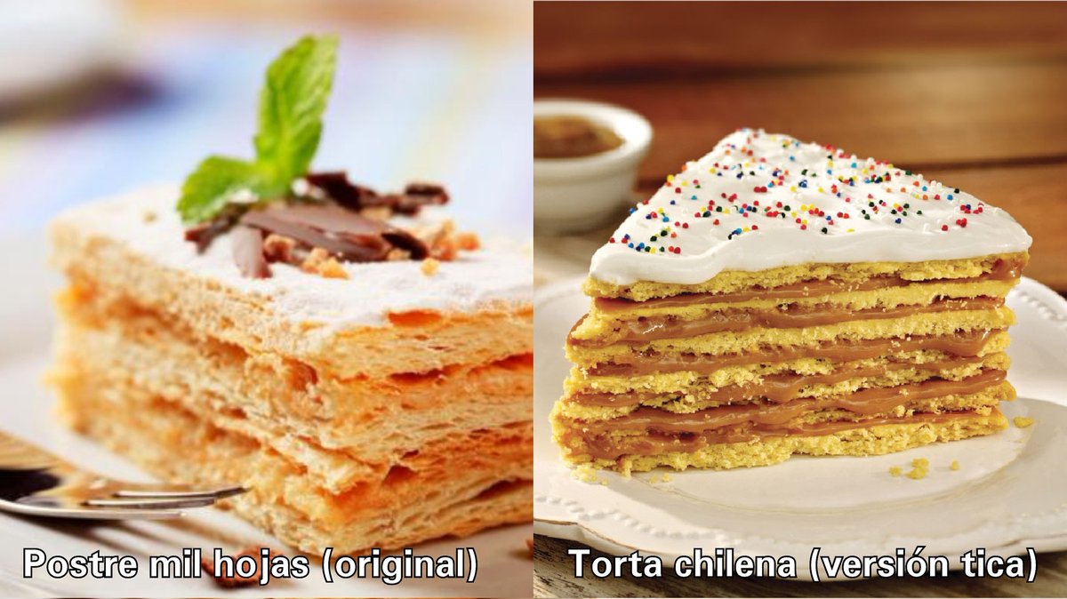 16. Algo que resaltaría es la creatividad que tenemos para hacer una nueva versión de postres de otros lados. Por ejemplo convetir el merengue en suspiros, el bizcocho en gatos, el postre mil hojas en torta chilena, los pestiños en prestiños y hacer orejas tamaño Oscar Arias