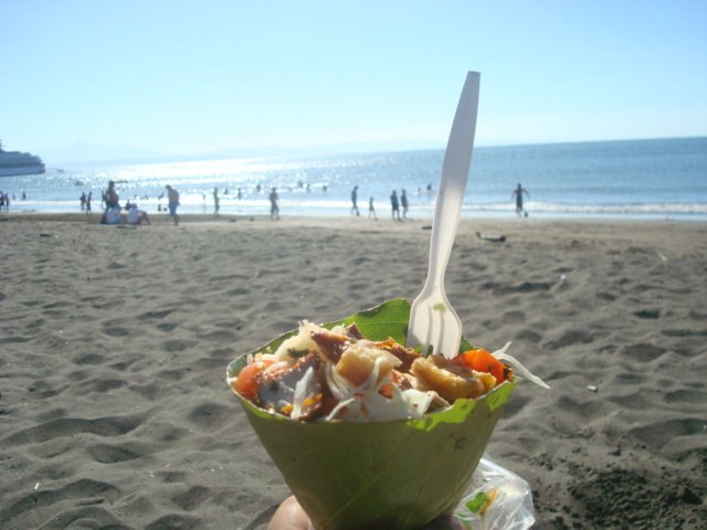 27. En el Pacífico Central se encuentran platillos como el salpicón, mariscada, sopa de mariscos, ceviche, piangua, chucheca y Vigorón (que se originó en Nicaragua en 1914 por una señora que quería poner pochotones a sus clientes beibolistas y fanáticos del beisbol)