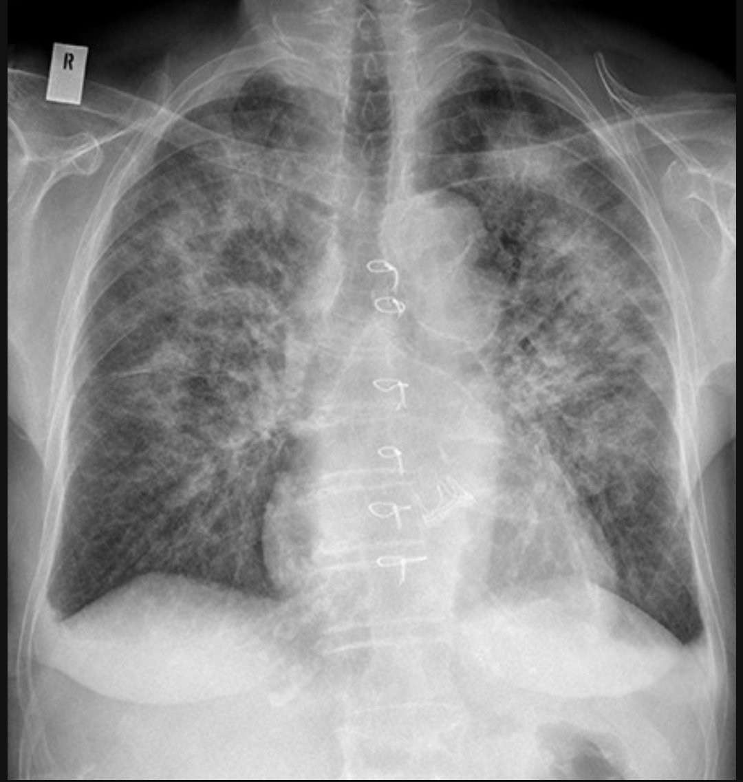 In the context of acute pulmonary oedema, alveolar oedema radiates symmetrically from the hilar regions in a ‘bat's wing’ distribution of airspace shadowing