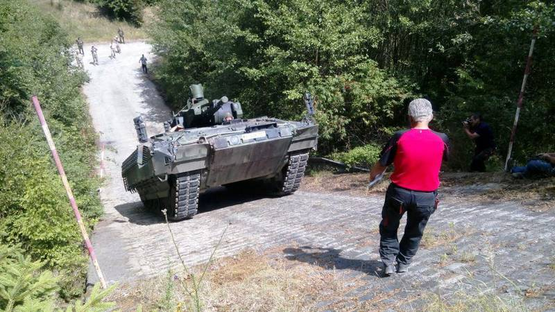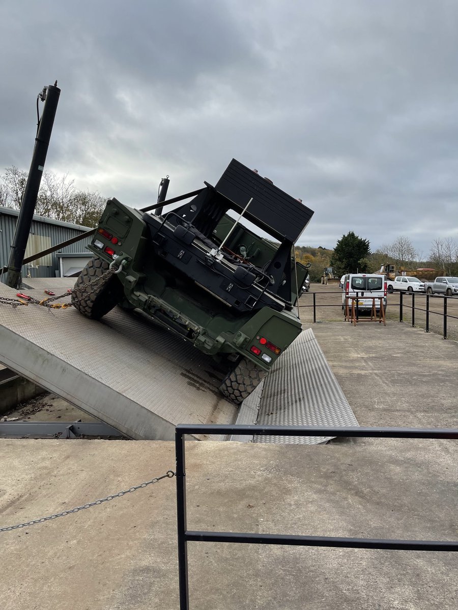 15/ Then add that any undulations when moving whilst at high tilt may compress suspension and rock the vehicle and that all makes high tilt angles harder (but not impossible) to achieve for wheeled AFV. Example this Boxer that is achieving a good tilt angle.