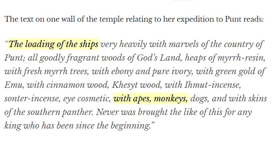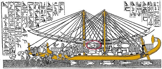 Egyptian wall carving of Queen Hatshepsut expedition to Punt shows Baboons on ship