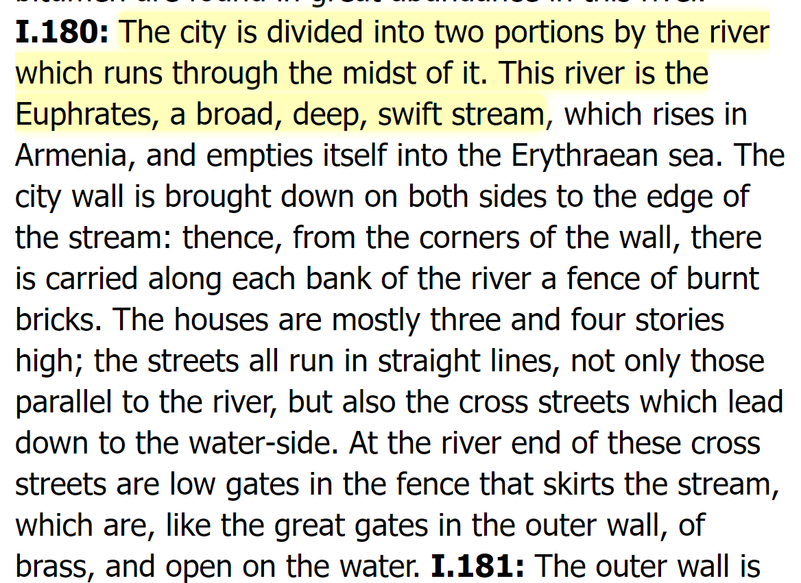 At Herodotus time, he tells us the Euphrates used to bisect Babylon, it now inundate part of its ruins.