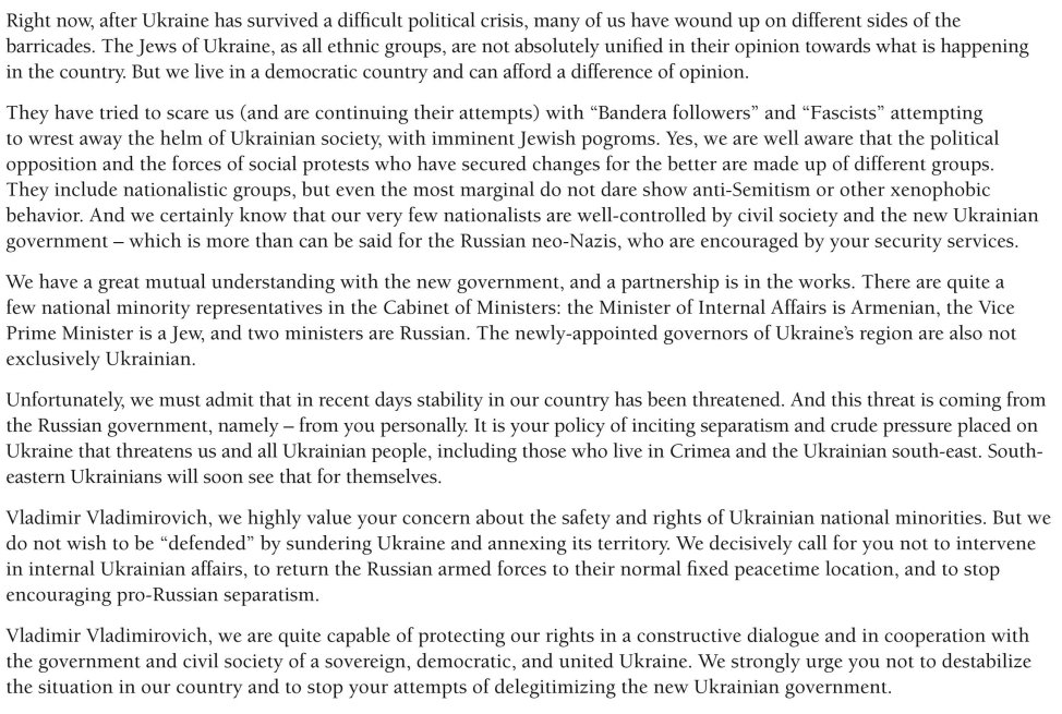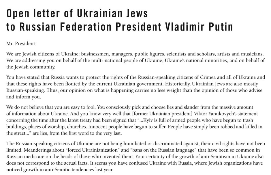 Open letter of Ukrainian Jews to Russian Federation President Vladimir Putin, March 4, 2014 ukrainianjewishencounter.org/media/Putin20L…