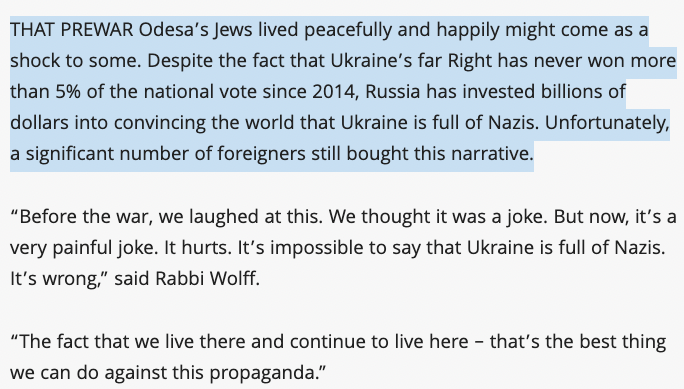 "Goldschmidt said it was remarkable that Volodymyr Zelenskiy,who made no secret of his Jewishness,was elected Ukraine’s president with more than 70% of the vote.That fact made a nonsense of Putin’s claim that Ukraine was being governed by neo-Nazis" theguardian.com/world/2022/dec…